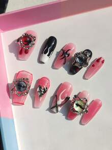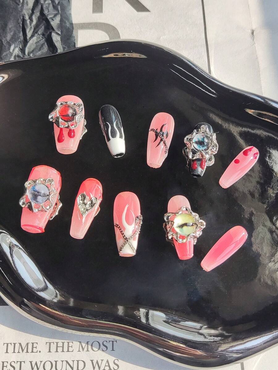 (in-stock) 10pcs Long Nail Lameizhitong False Nail Tips Set With Jelly Glue