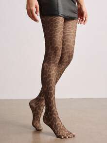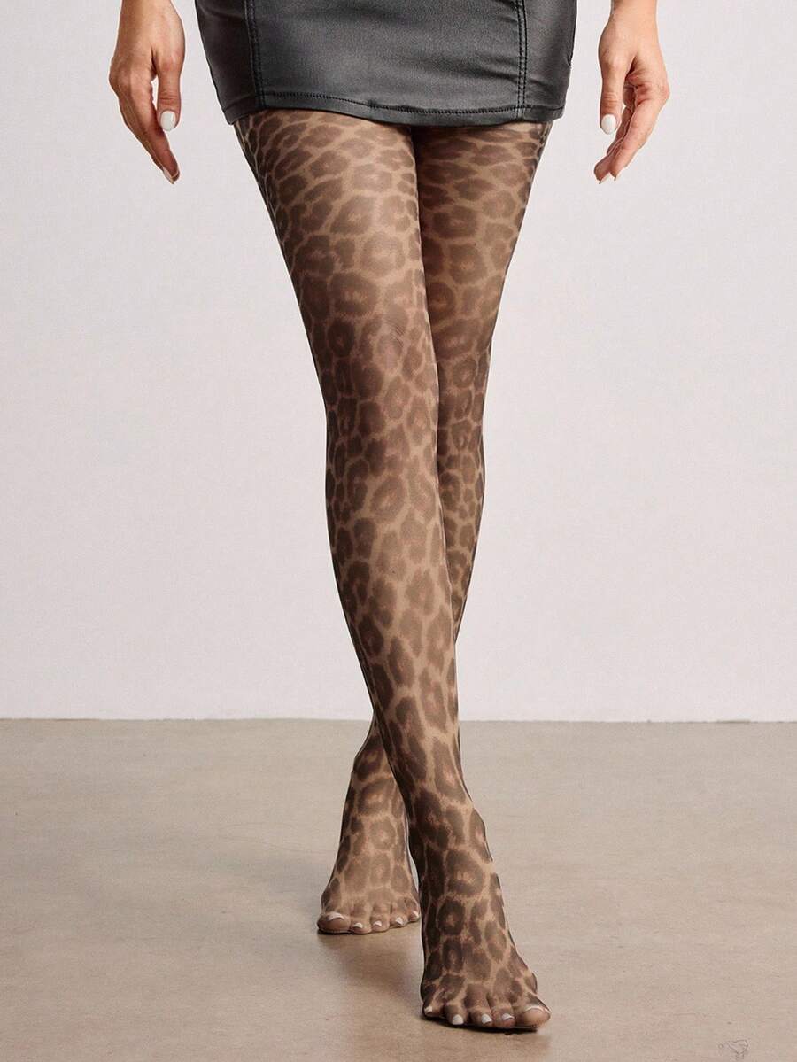 1 Pair Gothic Style Dark Plaid & Leopard Print Tights