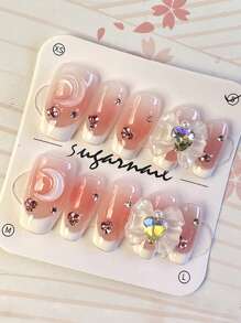 10pcs Long False Nails For French Manicure With Peachy Tinge, Free Jelly Glue Included