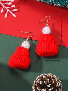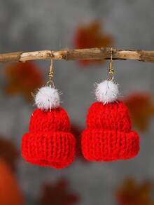 1pair Cute Christmas Handmade Knitted Pom-pom Hat Shaped Earrings