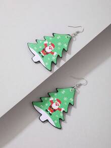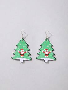 1pair Resin Santa Claus & Faux Leather Christmas Tree Printed Earrings, Women's Christmas Gift
