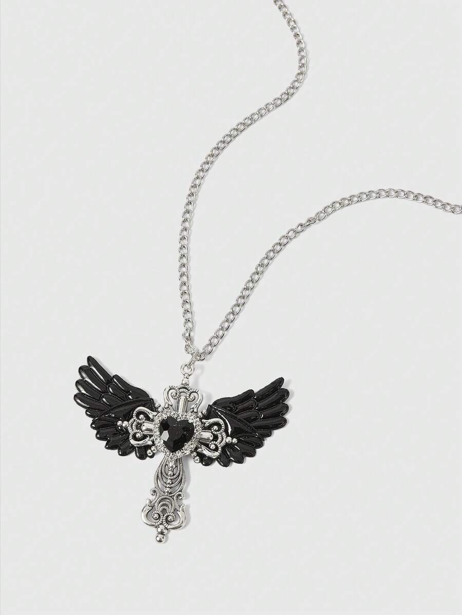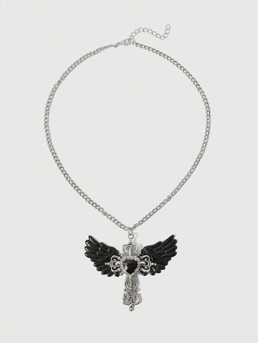 1pc/2pcs Gothic Sexy Accessories Wing Cross Pendant Necklace Y2K Jewelry Heart Crystal Choker Punk Charm Necklace, Suitable For Women/Girls Daily Wear Or As Valentine's Day, Mother's Day Gift