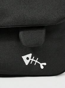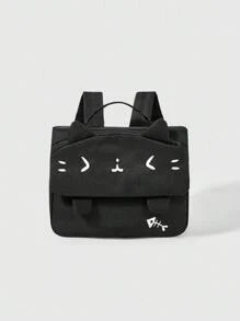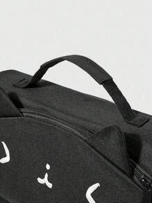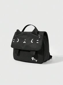 1pc Black Cute & Sweet School Style Cat Face & Fish Bone Print Fashion Backpack, Suitable For School, Travel, Anime Inspired