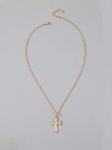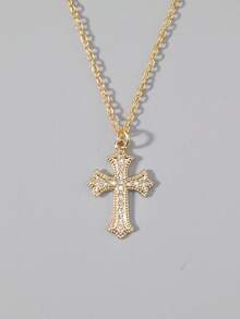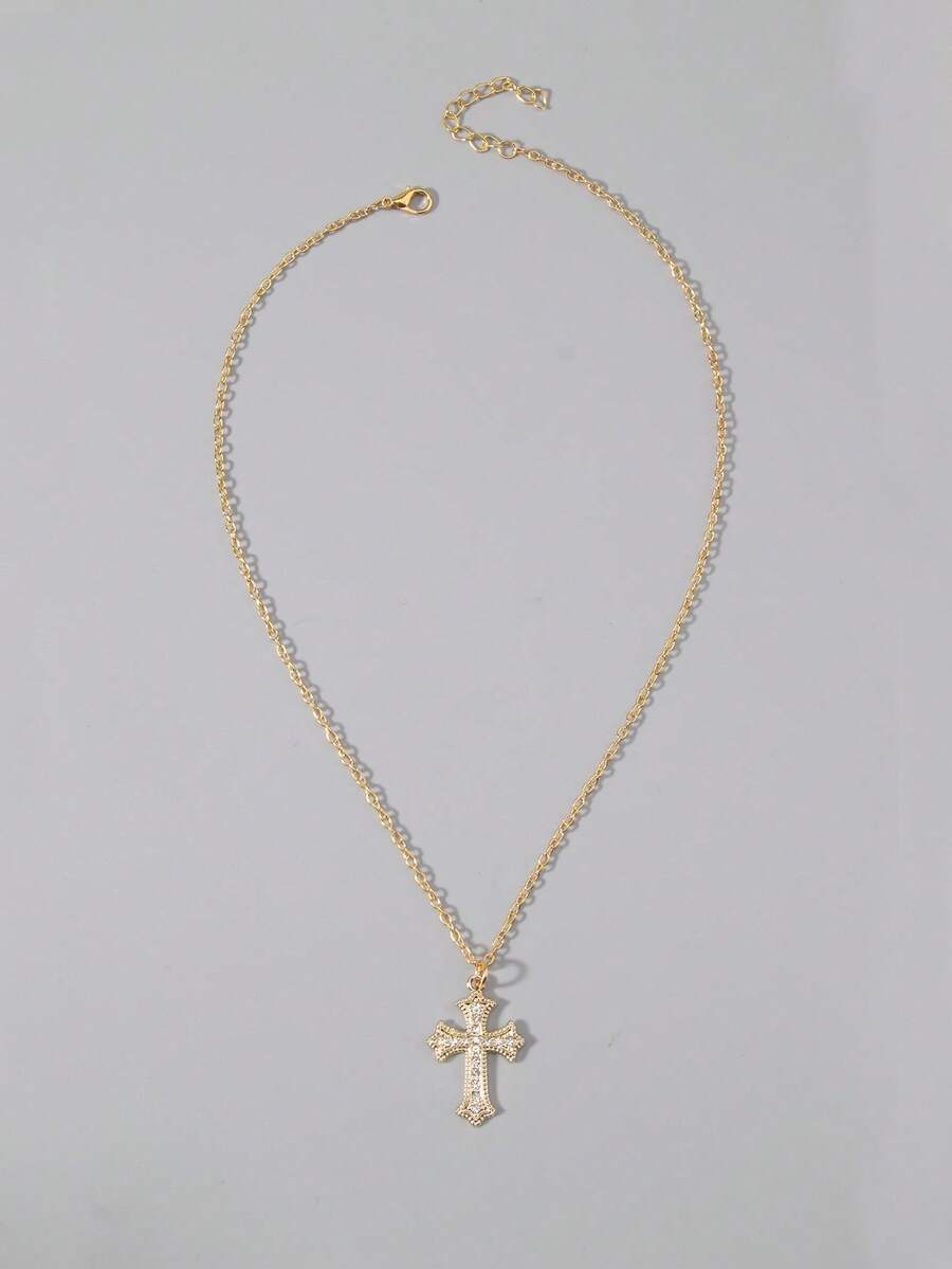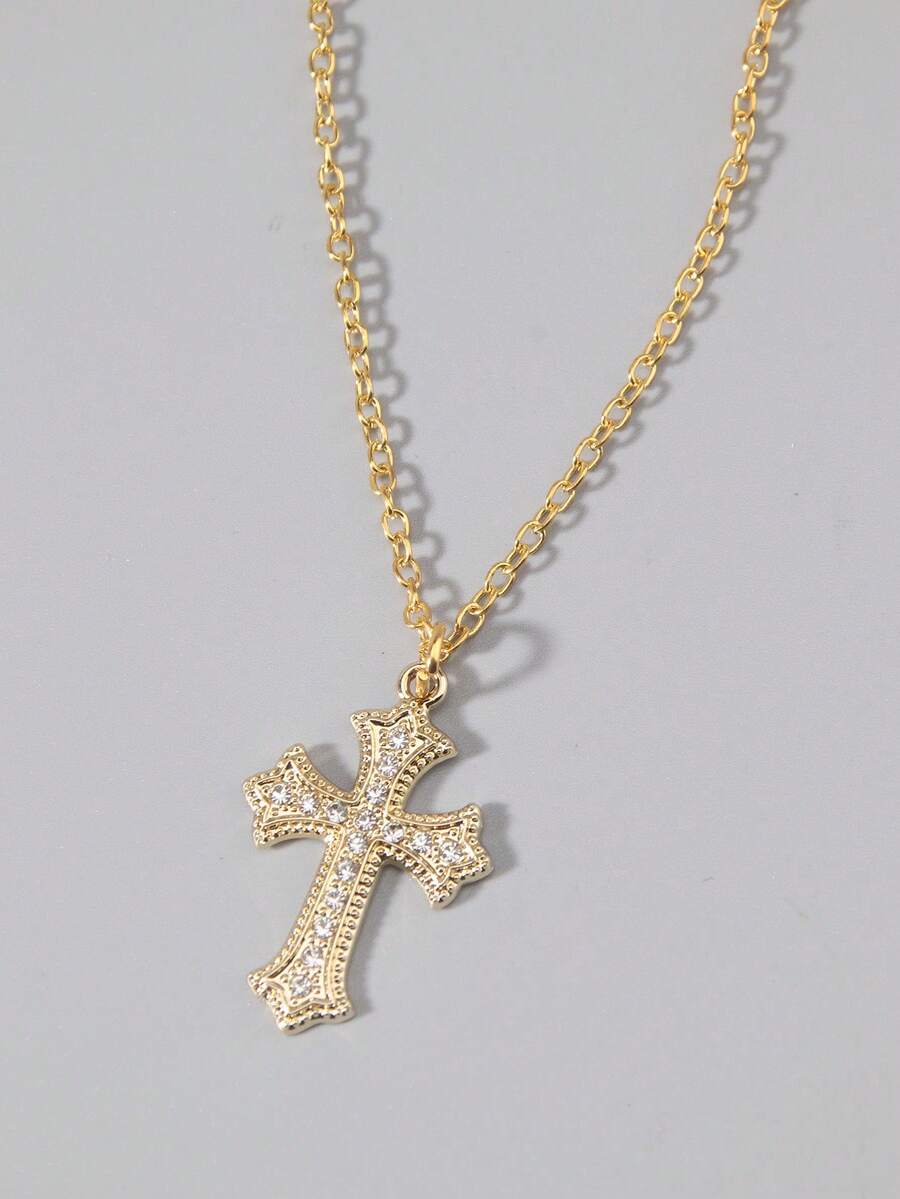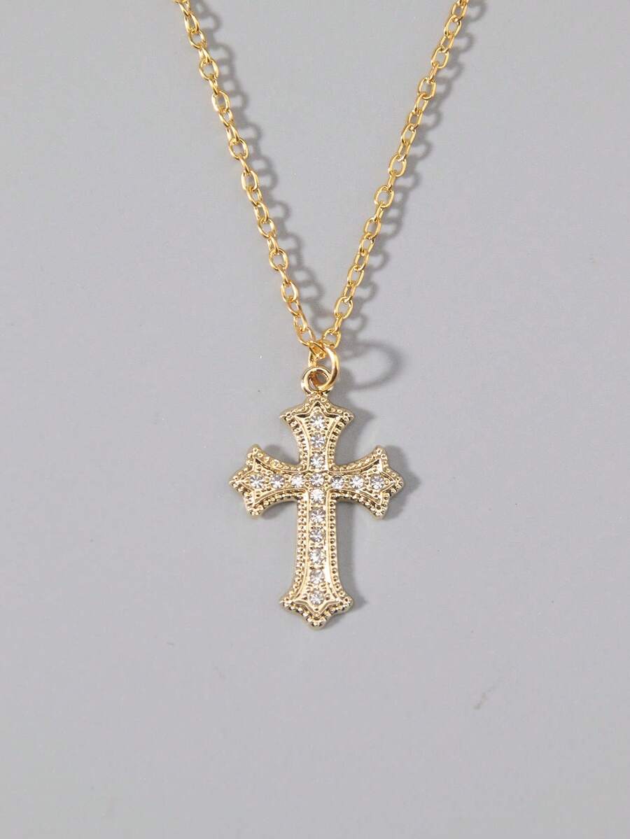 1pc Gothic Luxury Cross Pendant Necklace With Rhinestones, Holiday Party Gift, Halloween