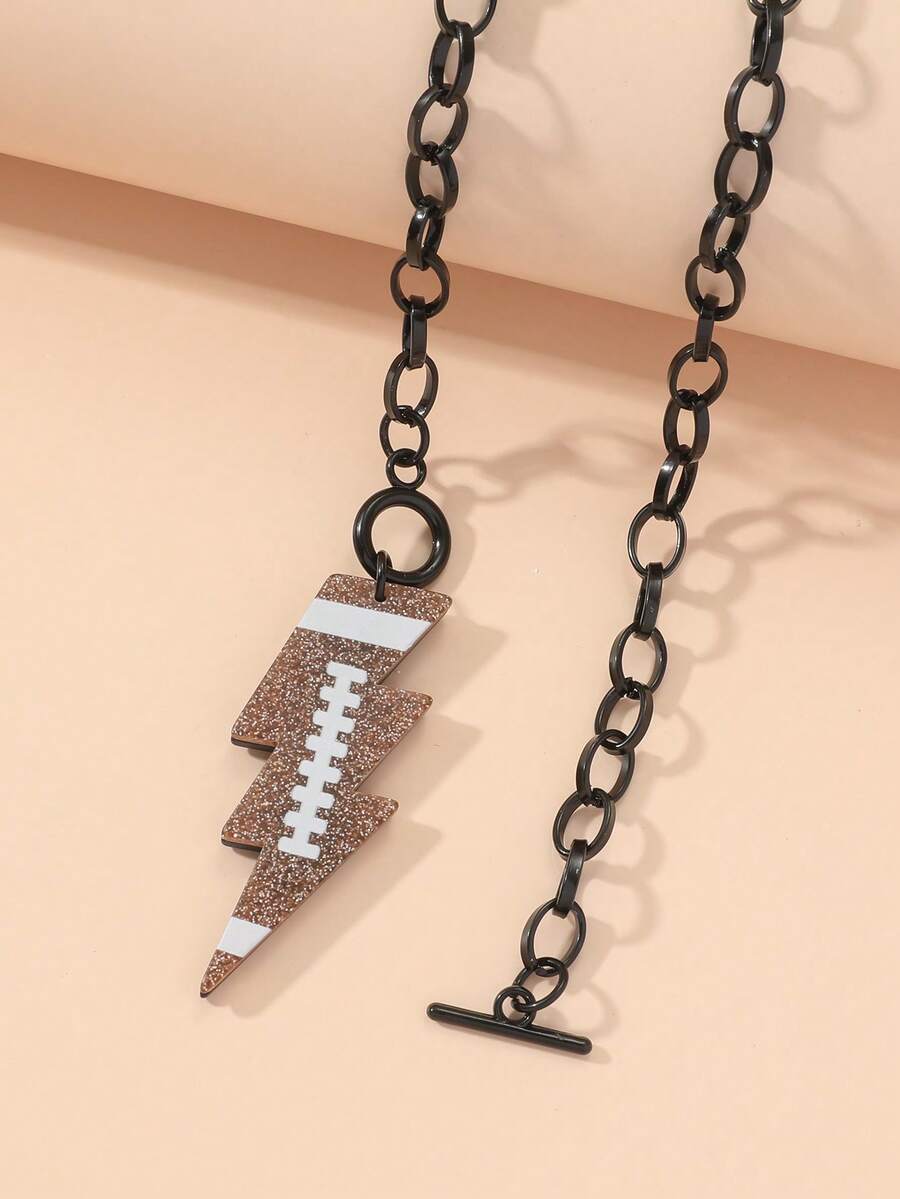 1pc Super Bowl Rugby Season Cartoon Sparkly Lightning Sport Chain Necklace
