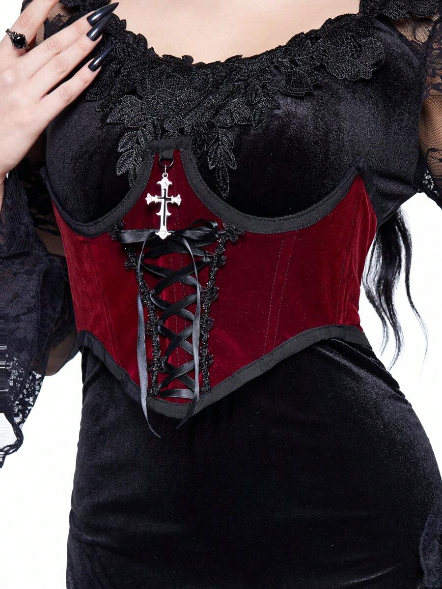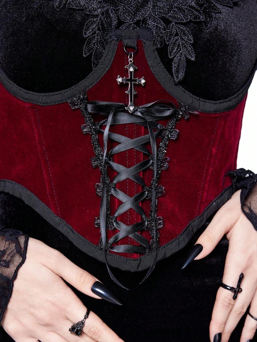 1pc Women Gothic Velvet Lace Up Decor Bodycon Dress, Versatile Daily Wear