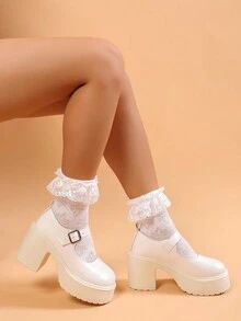 2023 New Arrival Ladies' Cute Round Toe Ankle Strap Beige High Heels & Platform Shoes