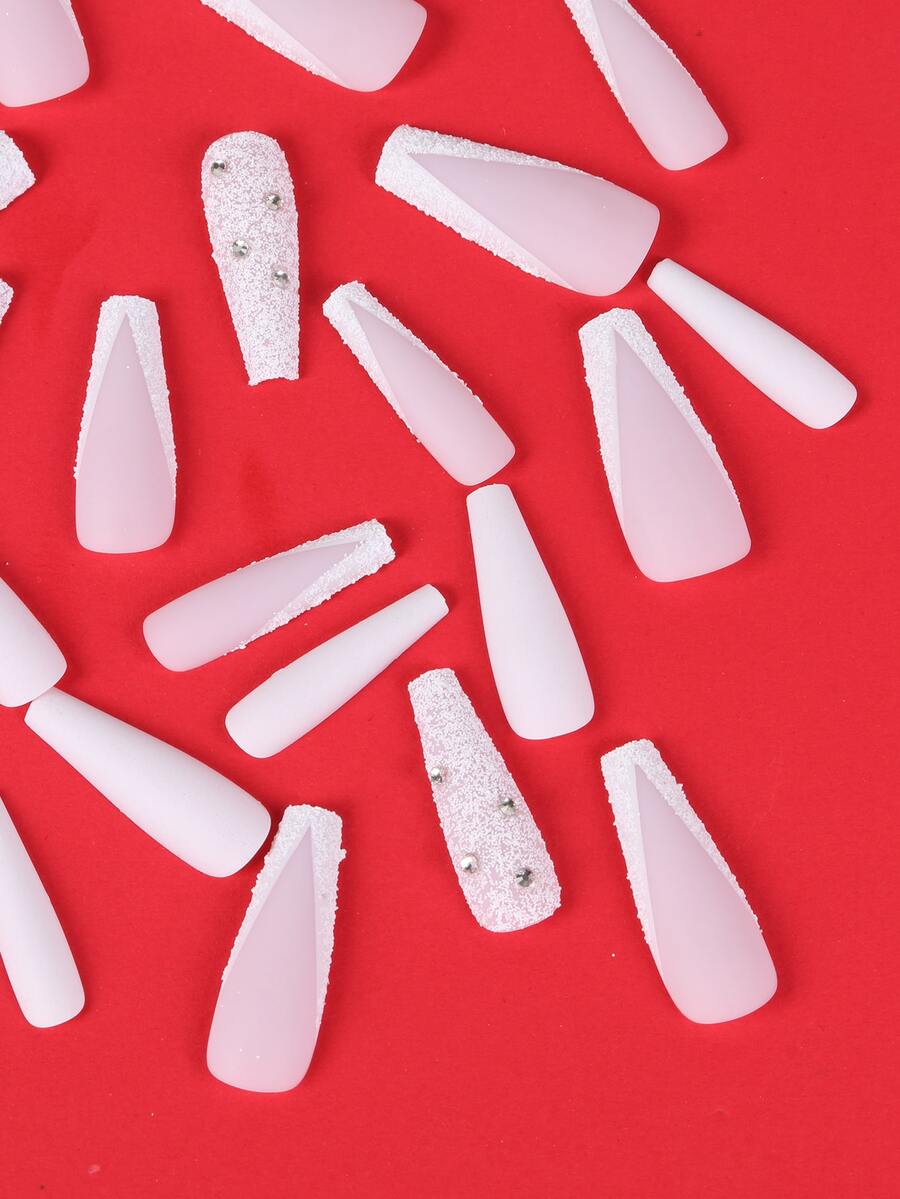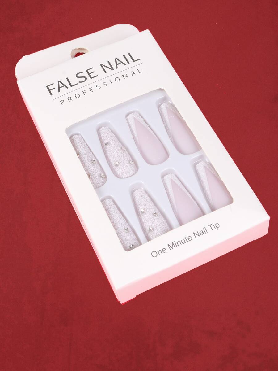 24pcs Long Coffin Rhinestone Decor Fake Nail & 1sheet Tape