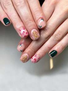 24pcs Short Gingerbread Man Design False Nails With Free Jelly Glue