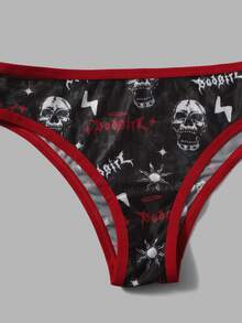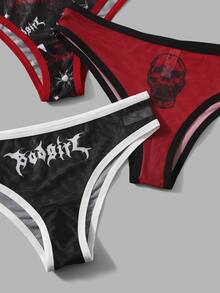 Goth 3pack Letter Skull Graphic Contrast Binding Panty Set