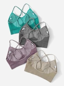 4pcs Criss Cross Backless Rib-knit Sports Bra