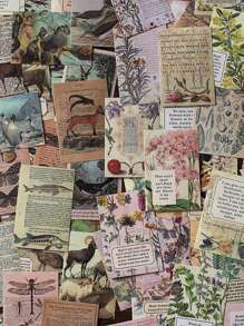 50pcs Vintage Plant & Animal Pattern Random Sticker