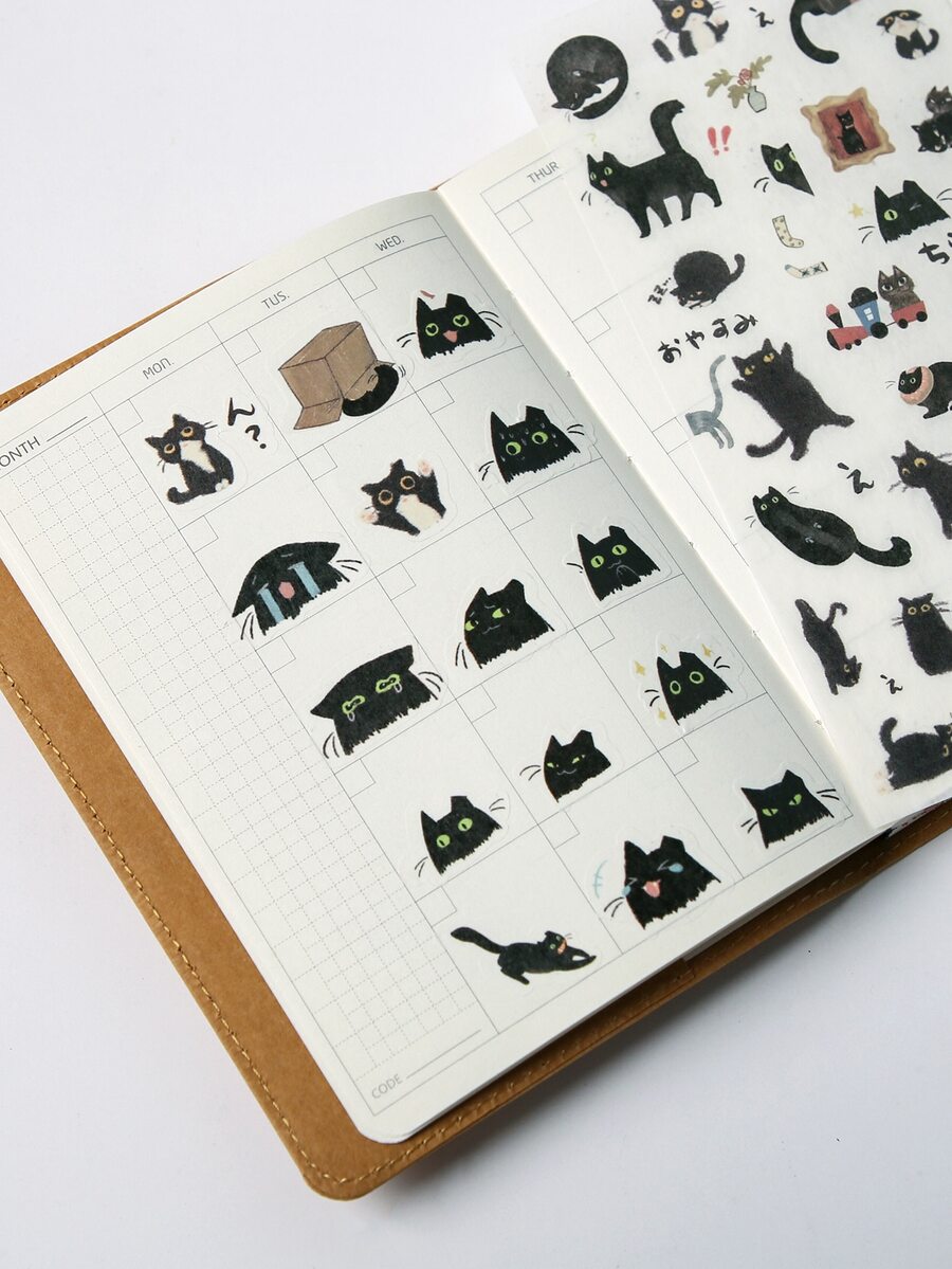 6pcs Black Cat Theme Stickers Decorative Kawaii Cute Cat Stickers Self Adhesive Clipbook Sticker For Laptop Stickers