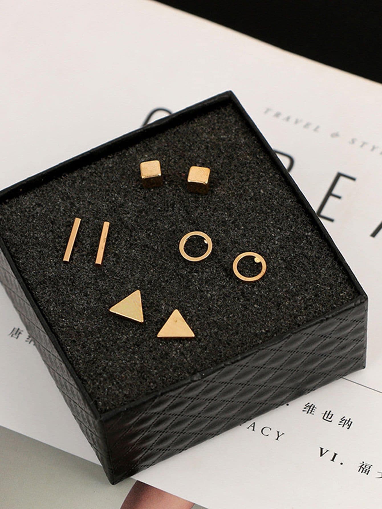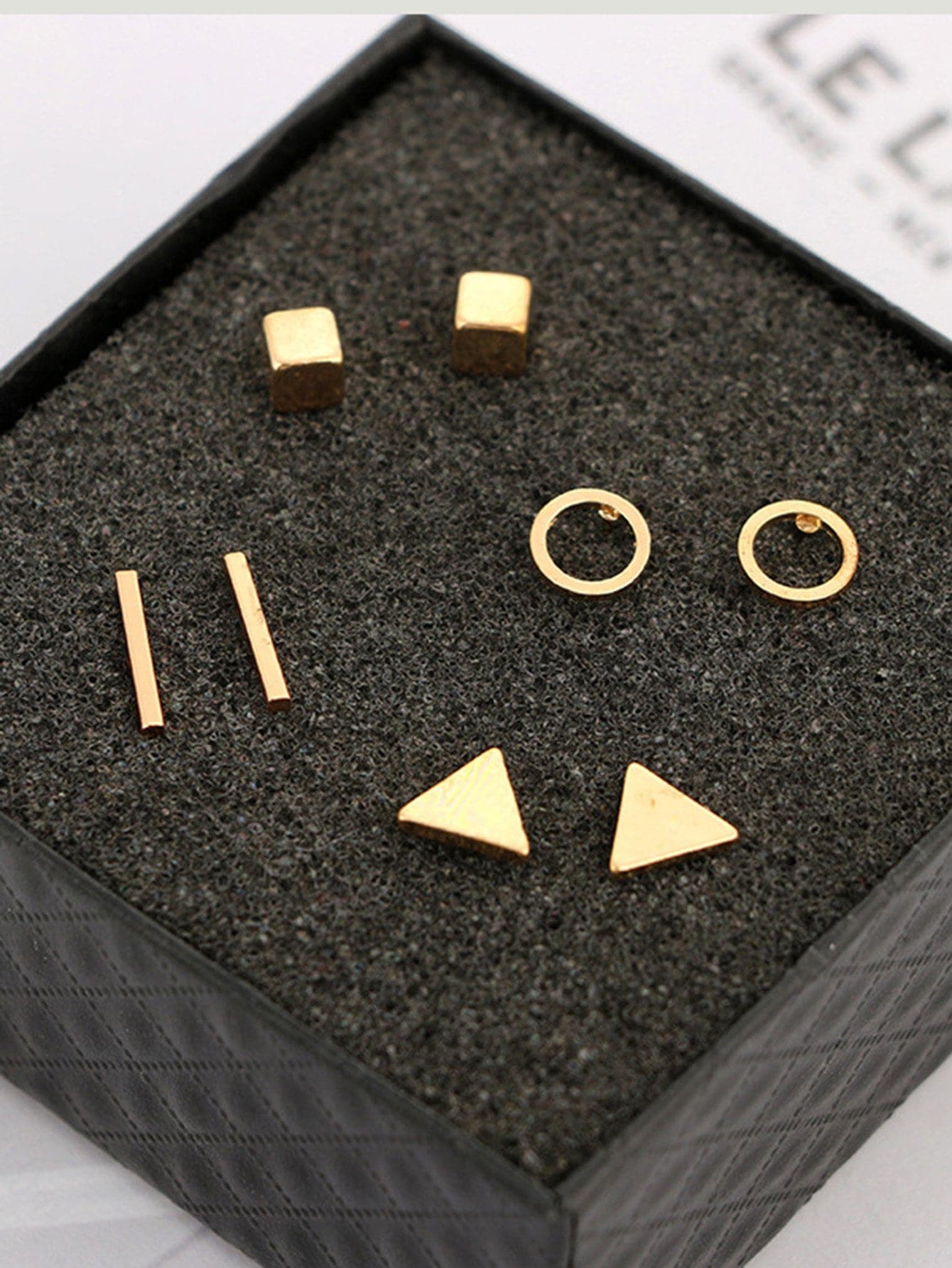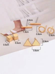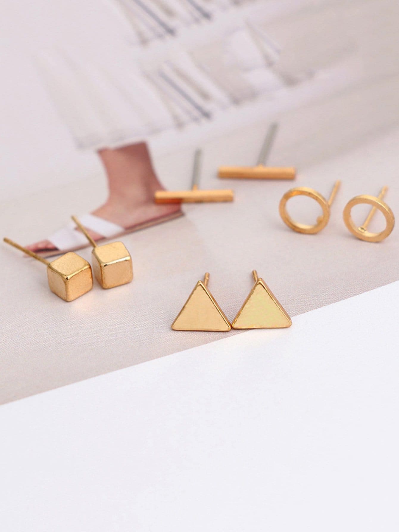 4pairs/set Zinc Alloy Cube & Circle Stud Earrings For Women For Daily Decoration