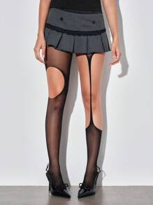 Academia 1 Pair Asymmetric Ripped Fishnet Pantyhose, Minimalist Sexy Tights, Ultra-Thin Elastic See-Through Stockings