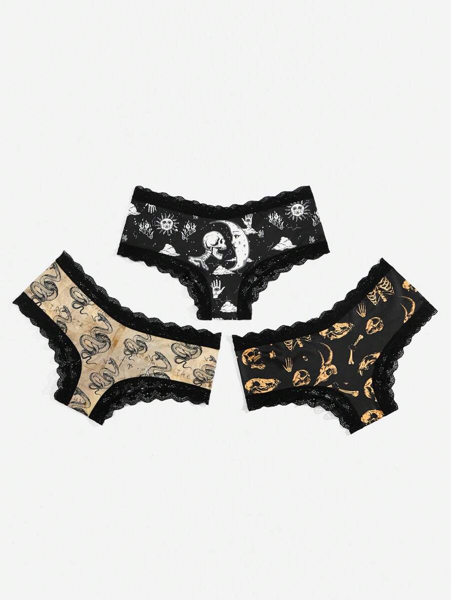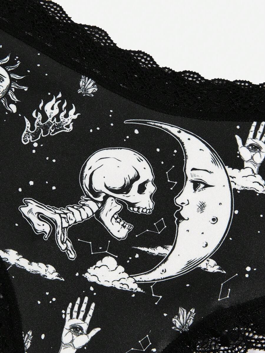 Academia 3pack Sun & Moon Graphic Contrast Lace Panty Set