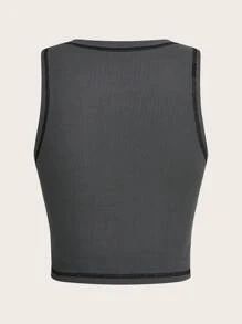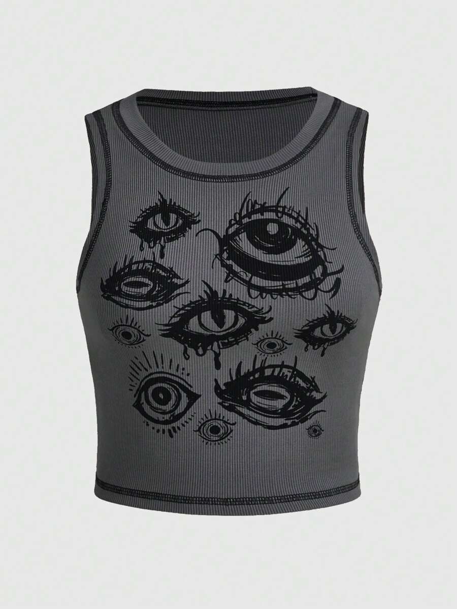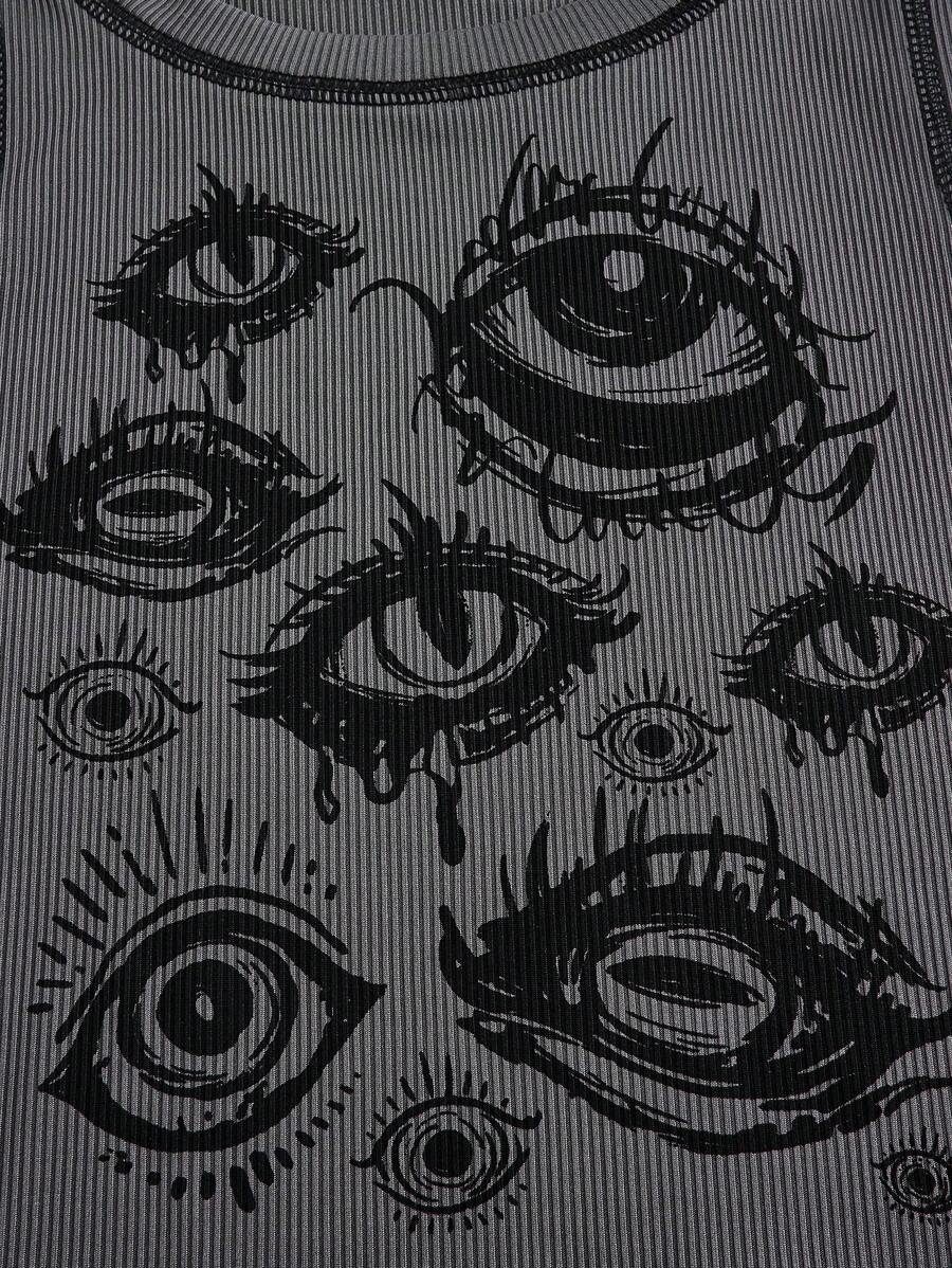Academia Eye Print Top-stitching Tank Top
