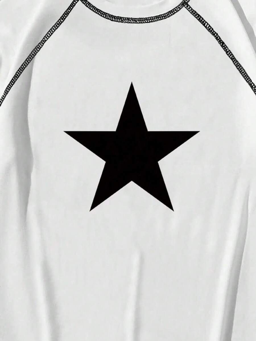 Academia Men Star Print Top-Stitching Raglan Sleeve Y2k T-Shirt, School