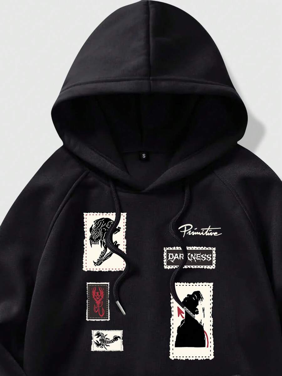 Academia Men's Hooded Fleece Sweatshirt With Character & Letter Print And Drawstring