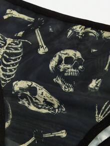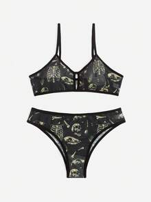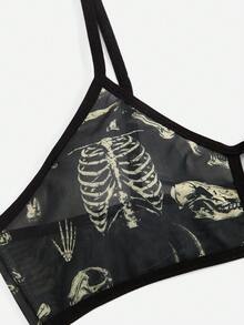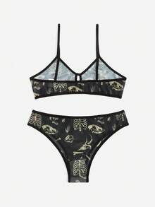 Academia Skeleton Print Mesh Lingerie Set
