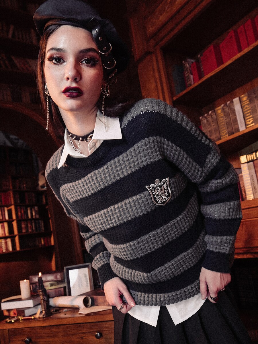 Academia Striped Patched Jumper Without Shirt