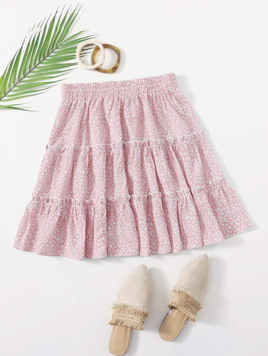 Allover Print Frill Trim Skirt