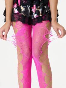 Anime 1 Pair Hot Pink Y2K Sexy Cutout Fishnet Leggings / Fishnet Tights / Open-Crotch Fishnet Pantyhose / Suspender Fishnet Stockings For Women