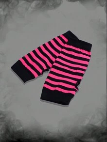Anime 1pair Striped Fingerless Gloves, Dark School Style