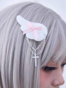 Anime 2pcs Butterfly Wing Hair Clips, Y2K Chain Cross Butterfly Hair Clips, Ponytail Hair Accessories Clips