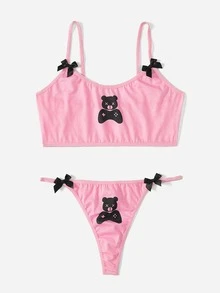 Anime Cartoon Bear Graphic Bow Decor Lingerie Set