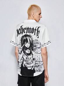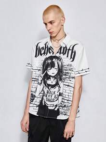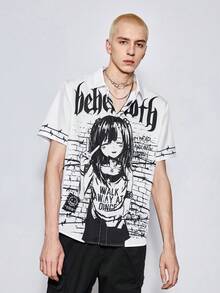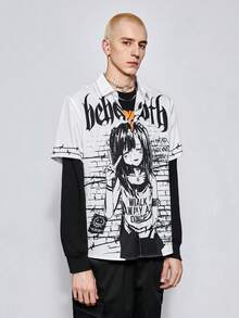 Anime Guys Figure & Letter Graphic High Low Hem Shirt