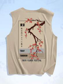 Anime Guys Floral & Slogan Graphic Tank Top