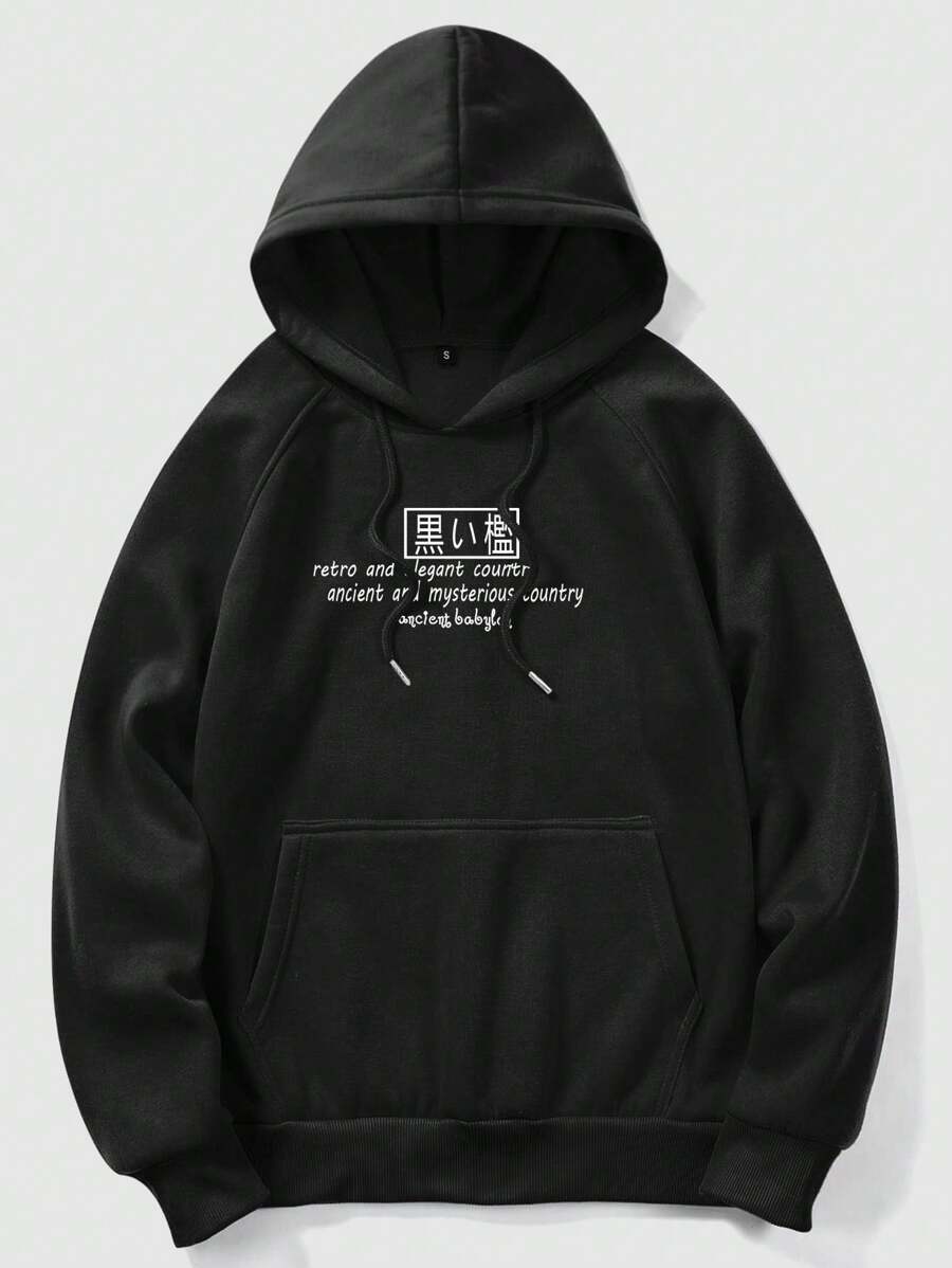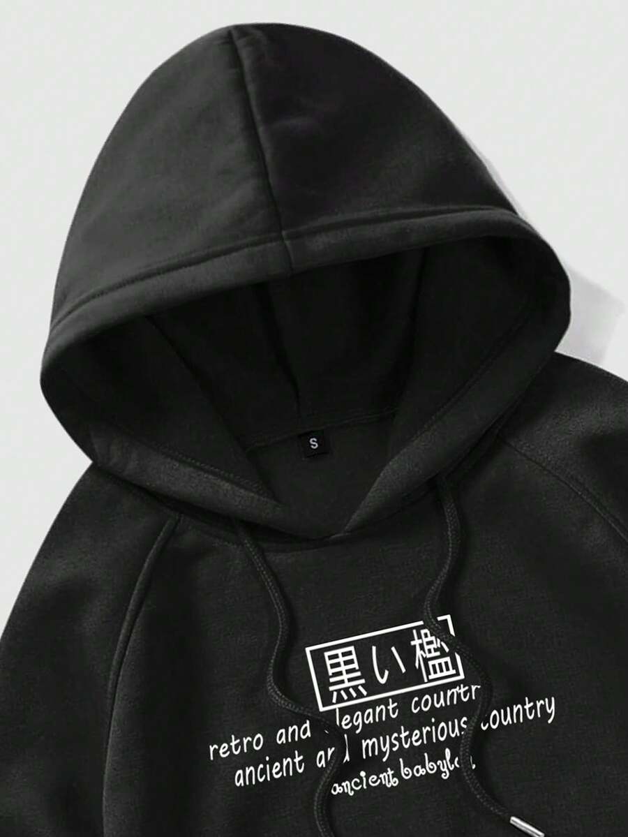 Anime Men Black Dragon Pattern Hooded Long Sleeve Sweatshirt