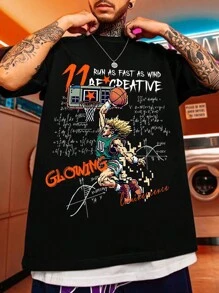 Anime Men'S Short Sleeve T-Shirt With Slogan Print