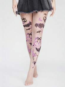 Anime Punk Skull, Bow, Heart, Bat Wing, Star Design Sheer Elastic Punk Style Tights, Pantyhose, Stockings For Women, Halloween