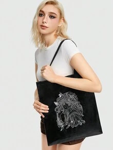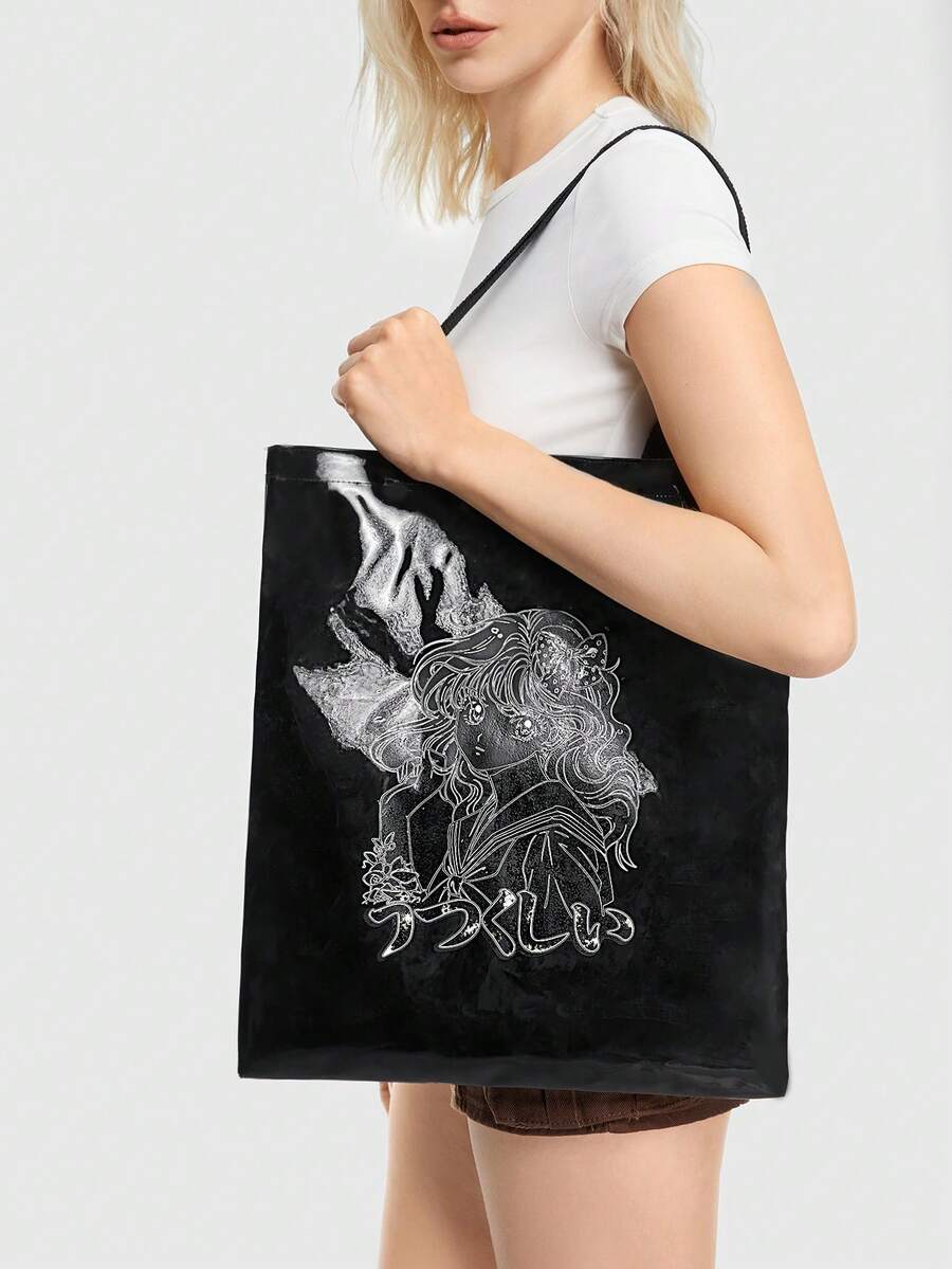 Anime Women's Cartoon Style-line Art Girl Pattern Printed Tote Bag