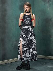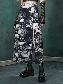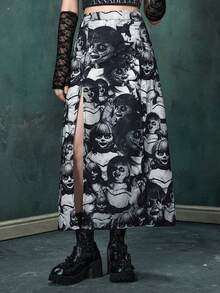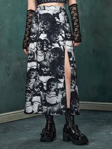 Annabelle Comes Home | ROMWE Figure Graphic Split Thigh Skirt