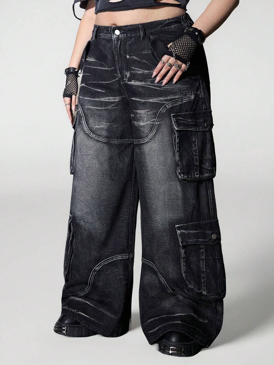 Grunge Punk Apocalyptic Punk Grunge Distressed Vintage Plus Size Streetwear Sense Wide-Leg Plus Size Women Boyfriend Jeans