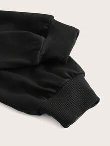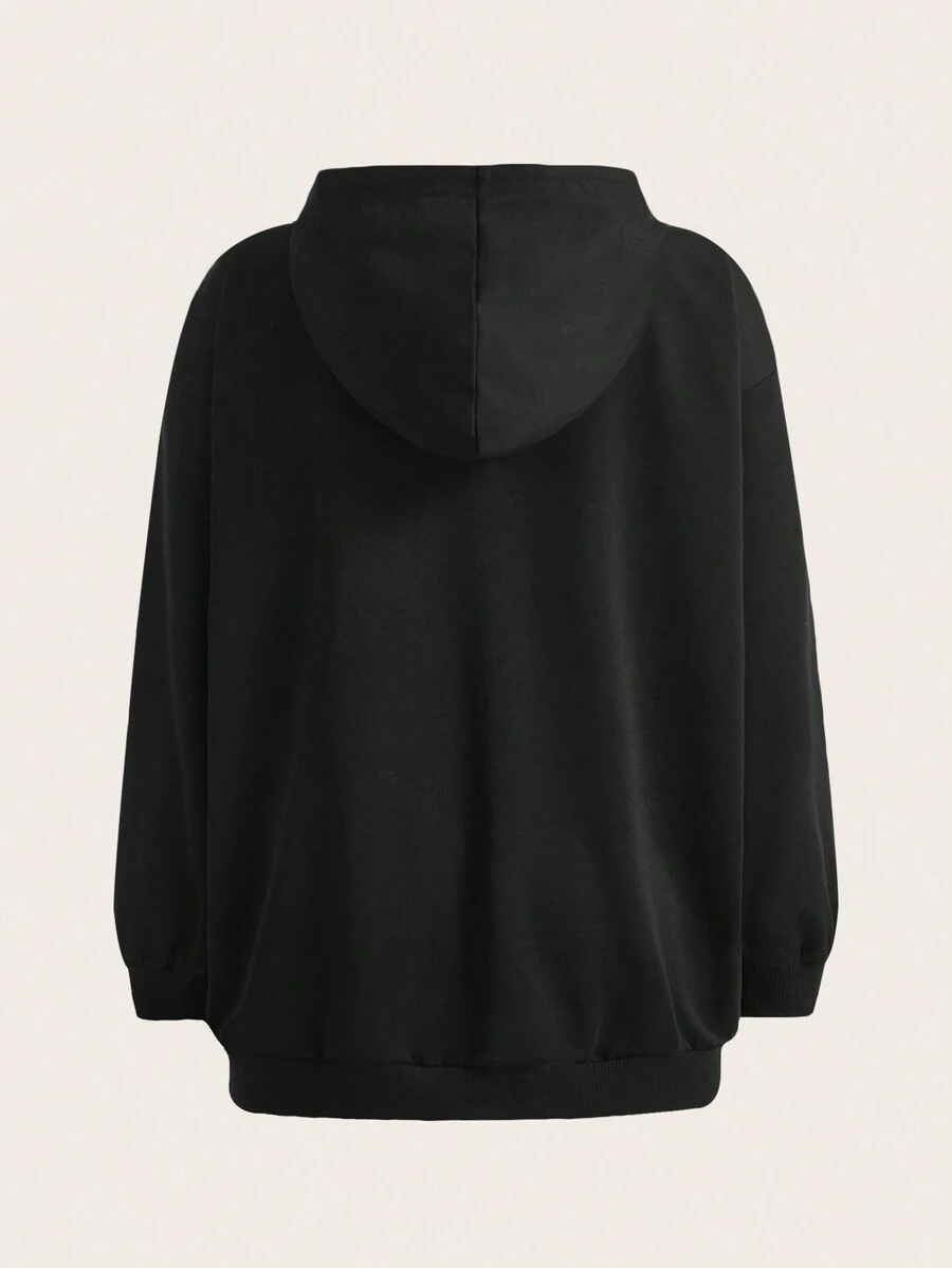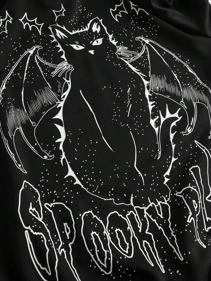 Bat & Letter Graphic Drop Shoulder Drawstring Hoodie