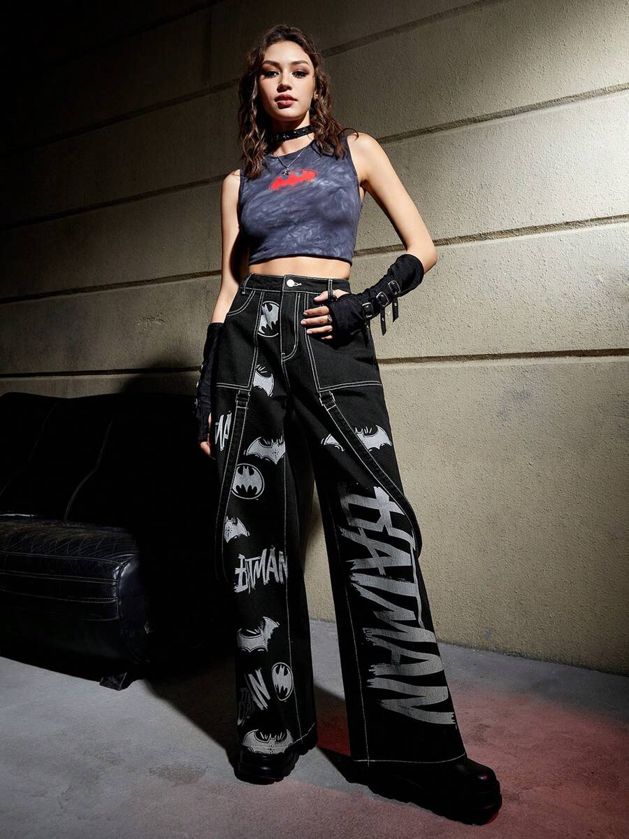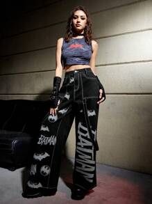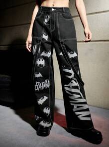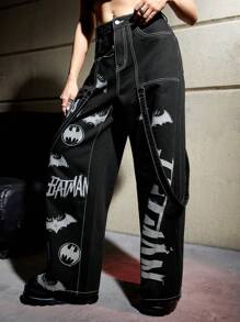 Batman X ROMWE Letter Graphic Wide Leg Jeans