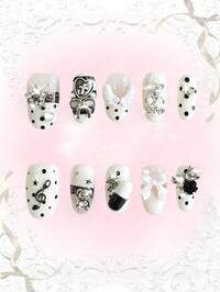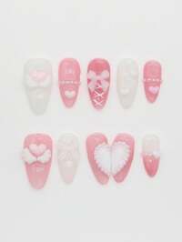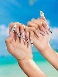 Fairycore 10pcs Beach Vacation Style Sea Stars, Shells, Mermaid Tails, Stars, Moon Hand-Painted High-Quality False Nails + 3pcs Double-Sided Adhesive, Detachable Reusable Faux Pearl Sticker Nail Art Stickers, Waves Pattern, Suitable For Holidays, Parties, Dancing, And Daily Wear