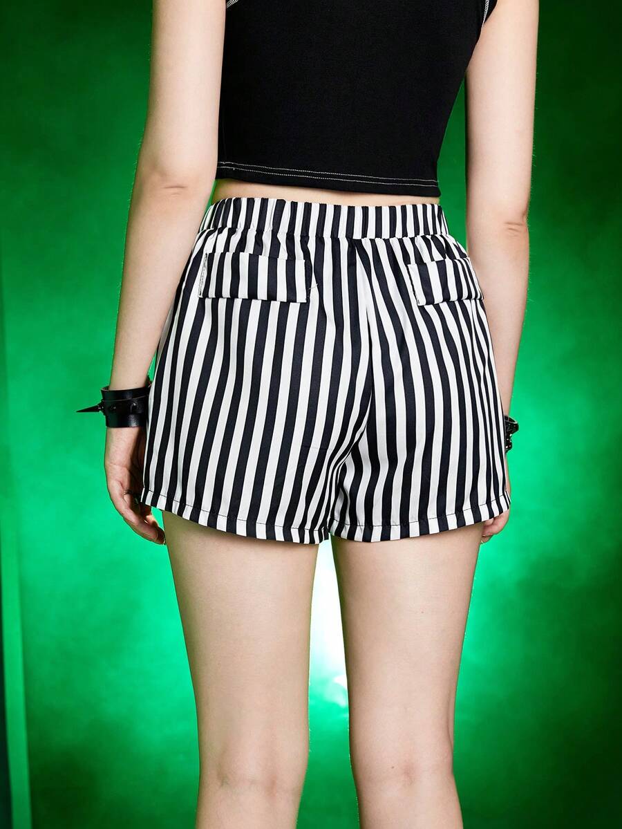 Beetlejuice | ROMWE Striped & Figure Print Shorts