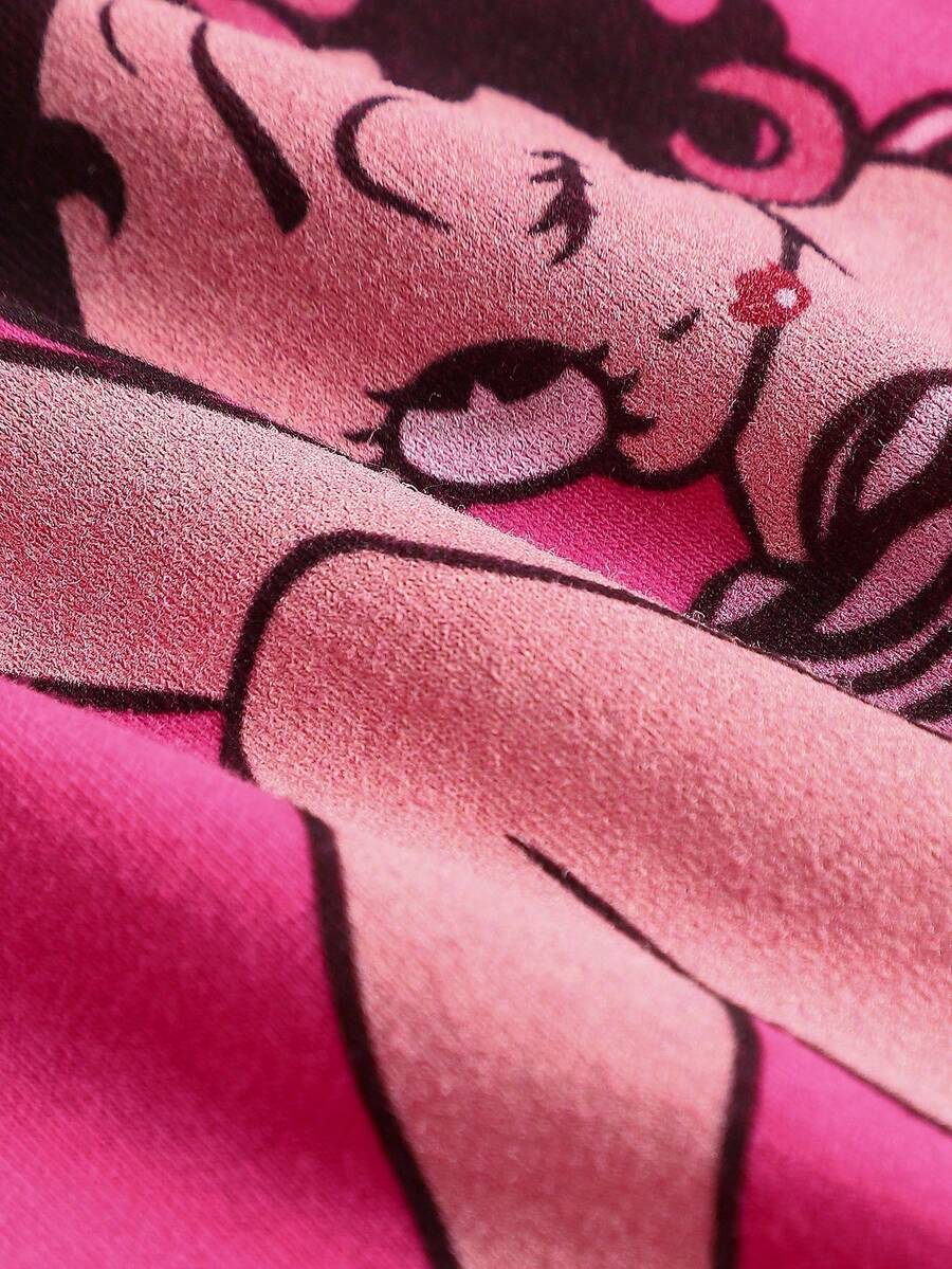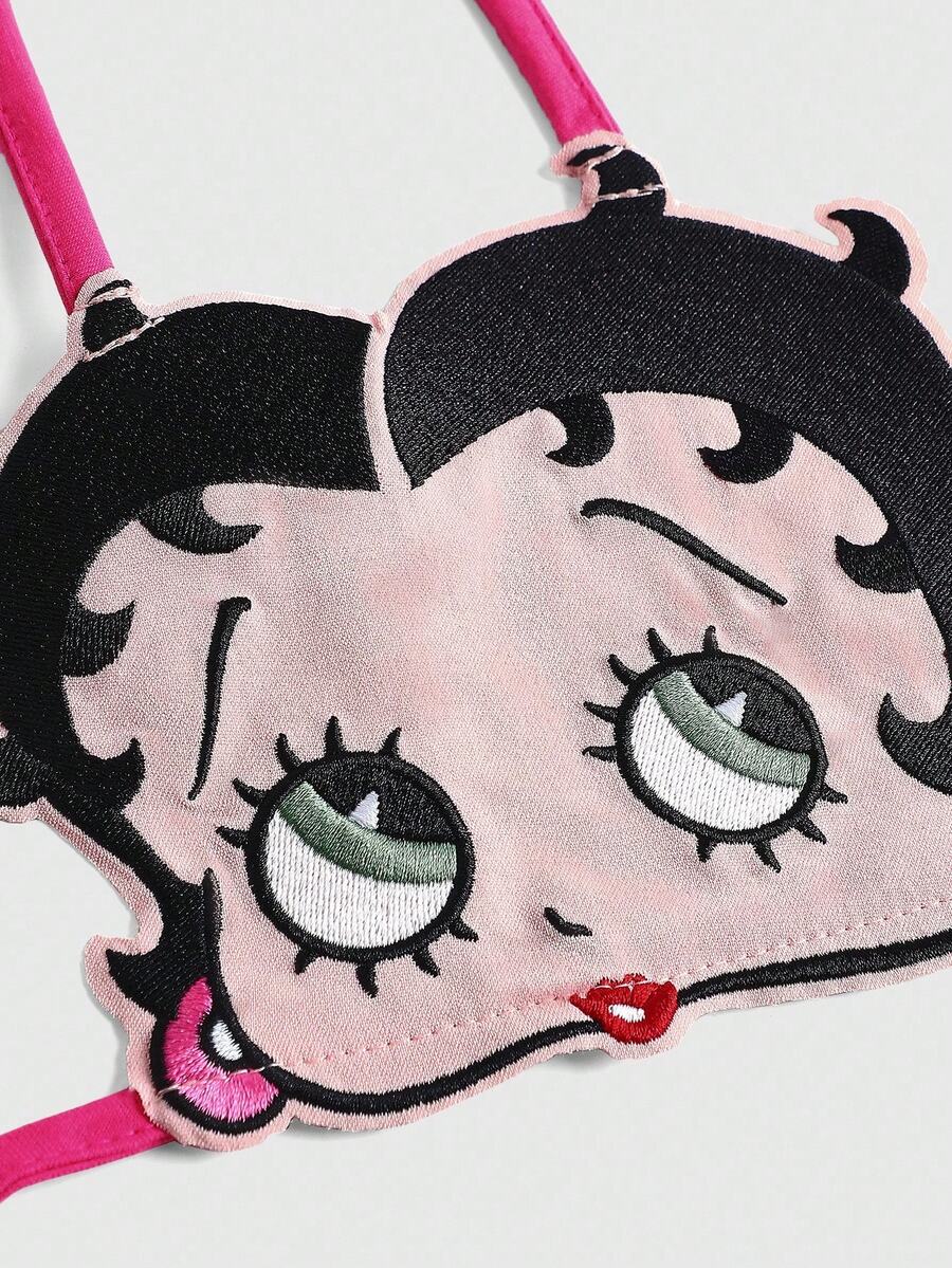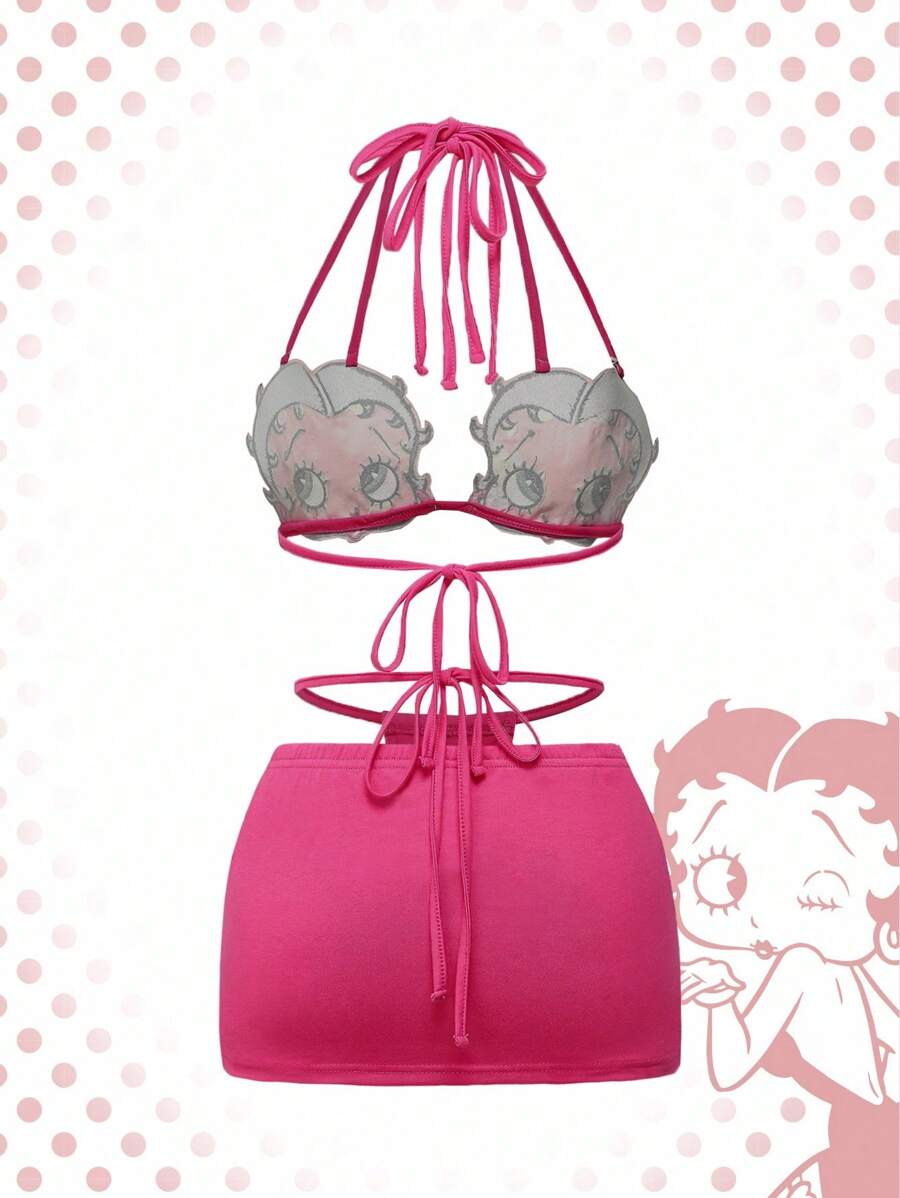 Betty Boop | ROMWE Cartoon Figure Graphic Y2K Sexy Betty Graphic Print Triangle Bralette & Ruffled Waist Low-Waist Super Short Skirt 2 Pieces Set