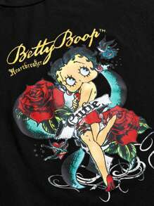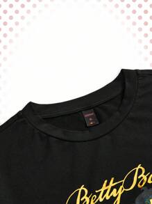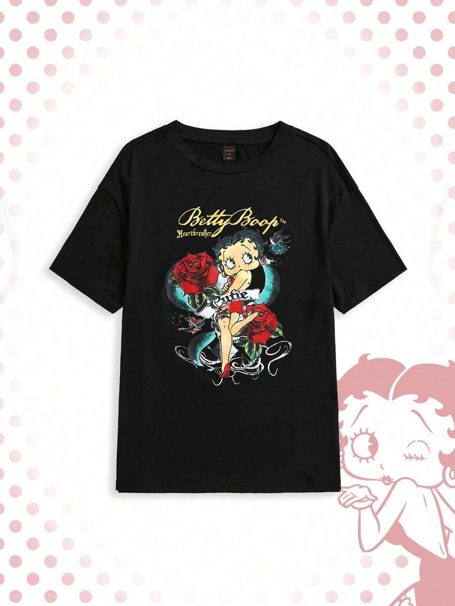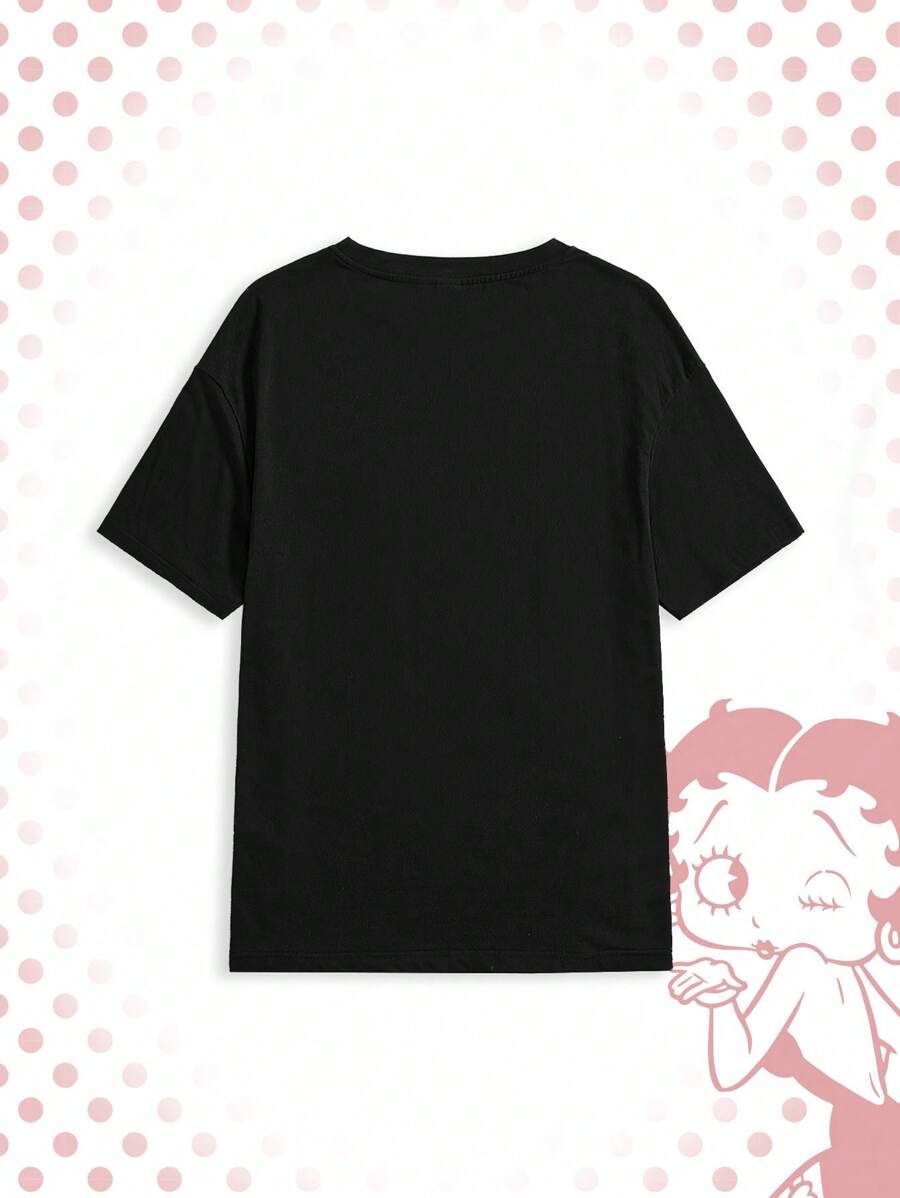 Betty Boop | ROMWE Women's T-Shirt With Letter And Cartoon Figure Graphic Suitable For Going Out