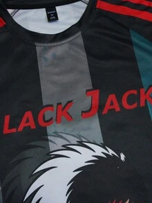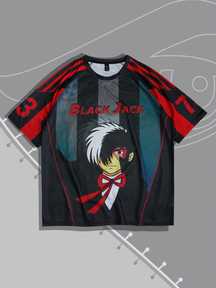 Black Jack X ROMWE Men Cartoon Figure Graphic Punk Street Style Round Neck Short Sleeve T-Shirt