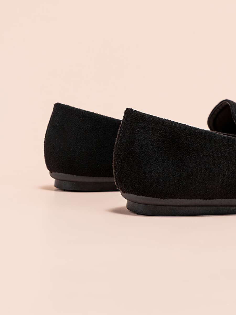 2025 Autumn Black Metal Decor Flat Shoes For Women, Fashionable Point Toe Loafers