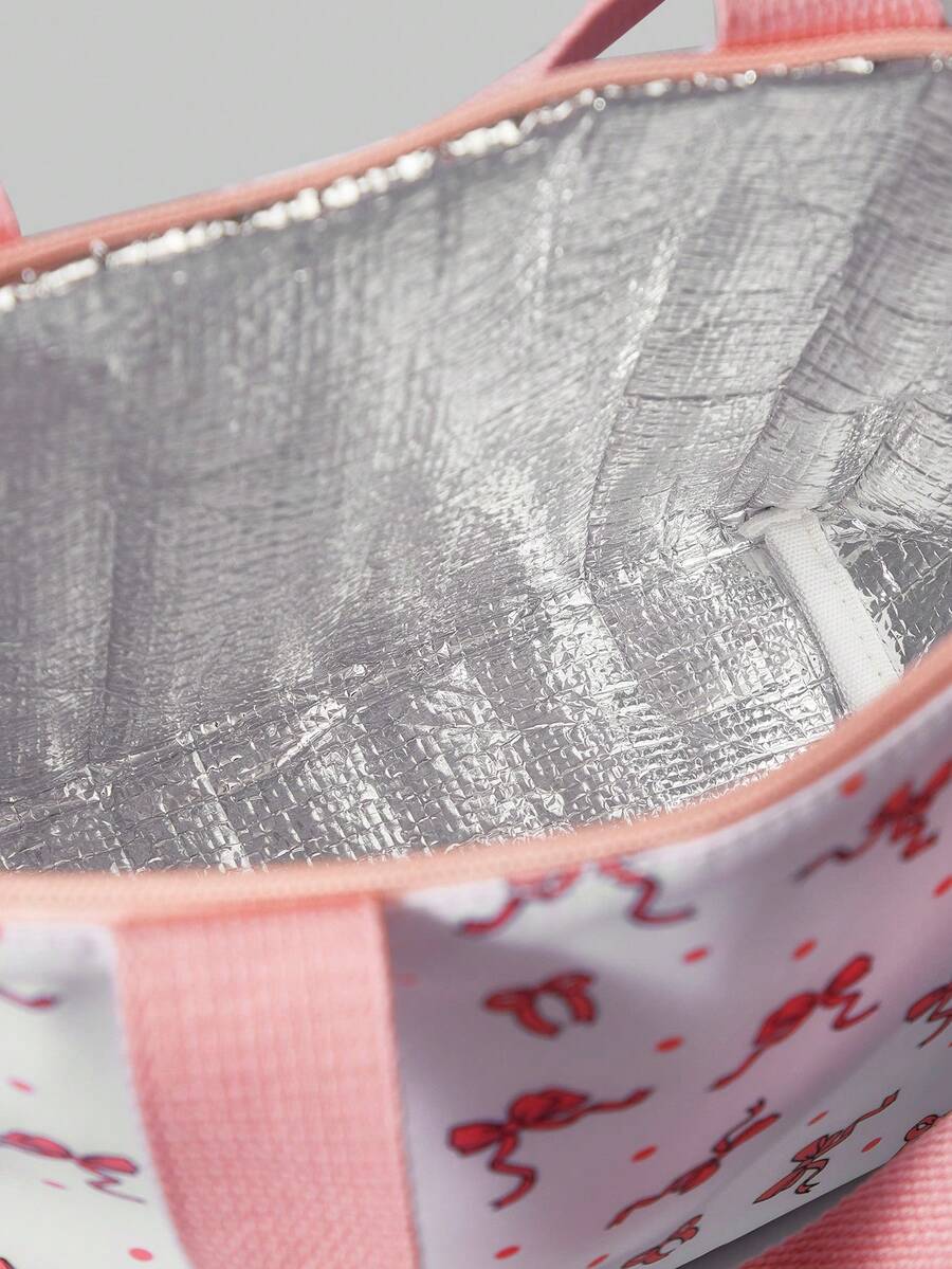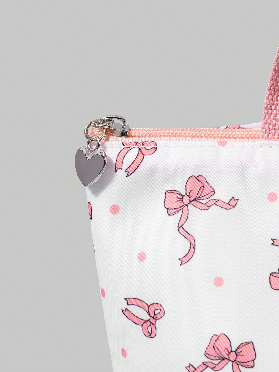 Kawaii Bow Print Fashion Insulated Lunch Bag, Large Capacity Tote