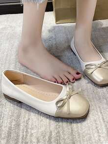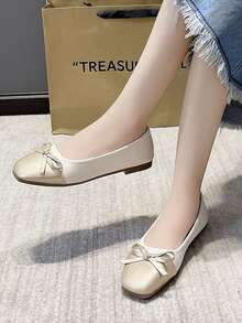 Bowknot Design Low Vamp Flat Shoes, Soft Sole, Casual Style Suitable For Dresses, 2023 Autumn New Arrival