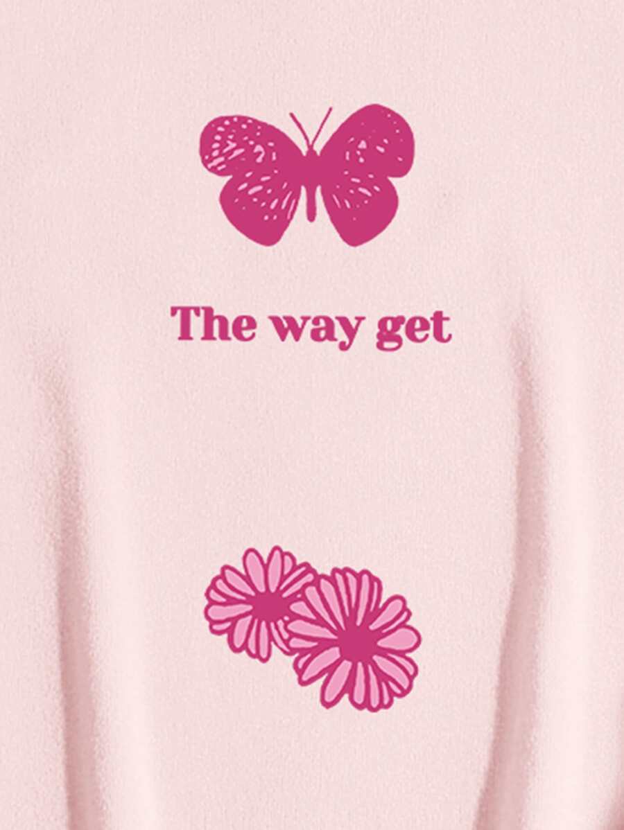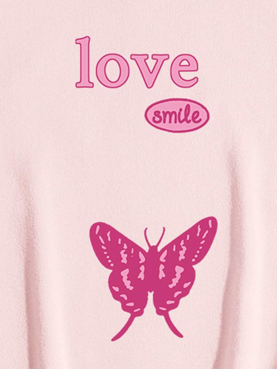 Butterfly And Letter Graphic Kangaroo Pocket Thermal Lined Drawstring Hoodie