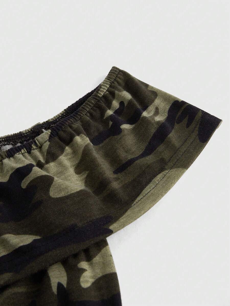 Camouflage Printed Off Shoulder Ruched Summer Casual Vacation Women's T-Shirt